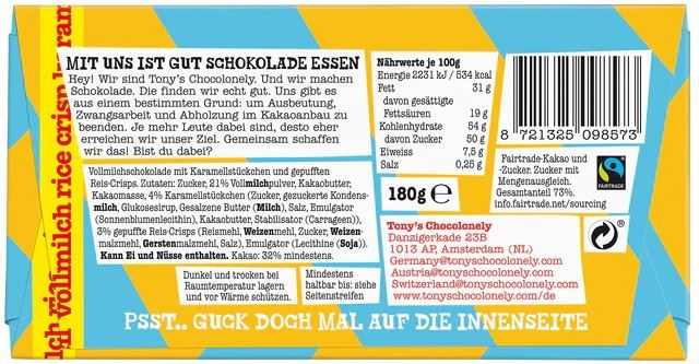 - Tony's Chocolonely Vollmilch Rice Crisp Karamell 180g