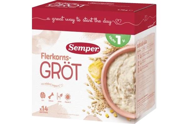 Semper Multigrain Porridge 1Y 470g is a nutritious blend of several cereals, including whole-grain oats and wheat, suitable for children from 1 year. It is enriched with iron to support cognitive development, iodine for normal growth, and calcium and vitamin?D for bone and immune health. The fat composition includes cream, rapeseed and sunflower oil for a balanced profile. Semper Multigrain Porridge 1Y 470g provides a complete meal for any time of day.